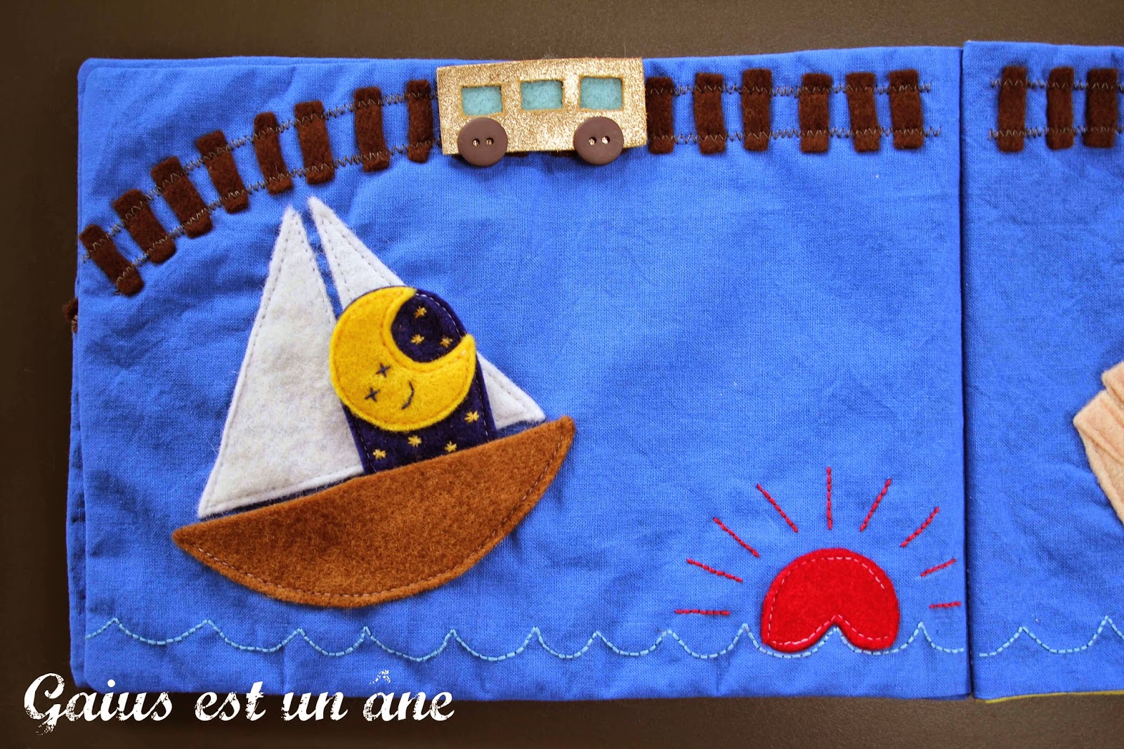Je vous dévoile aujourd'hui le projet qui me tenait occupée depuis plusieurs mois : un livre en tissu pour mon grand G ! J'avais prévu de le lui offrir pour Noël mais même sans les microbes de décembre je n'aurais jamais eu le temps de finir, alors pas de regrets ! Je le lui ai finalement donné mercredi dernier, et il était plus que ravi :-) On a beaucoup chanté Prévert depuis !